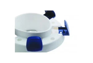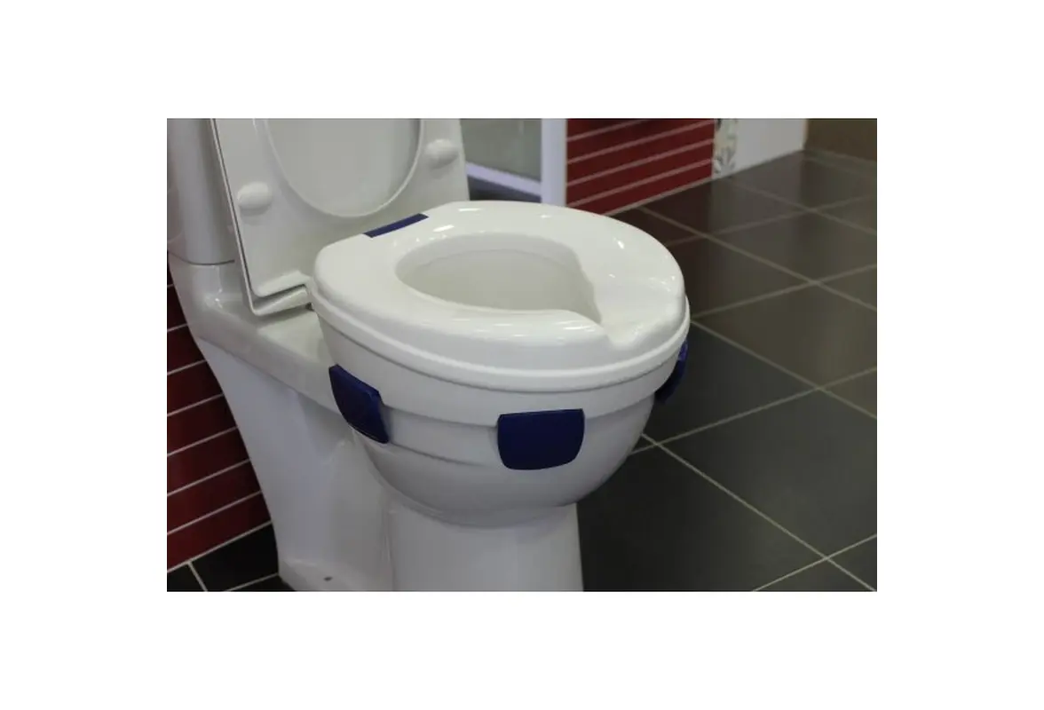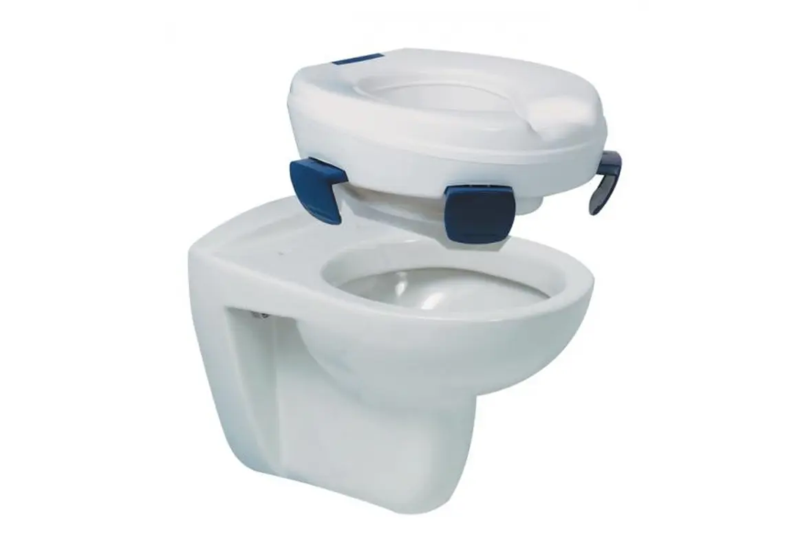 Namesti se ga preko utora v nastavku s spodnje strani in fiksira na toaletno školjko s štirimi zatiči. Za namestitev je potrebno dvigniti ali odstraniti obstoječo desko (odvisno od postavitve školjke). Nastavek poviša toaletno školjko za 11 cm in s tem olajša usedanje oz. vstajanje.